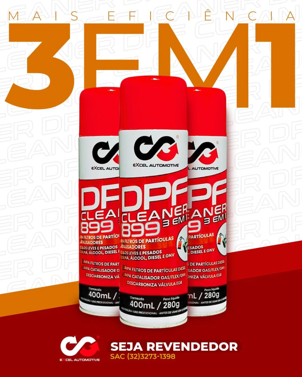 Produto de uso profissional, formulado para limpeza profunda de catalisadores e filtros de partículas (DPF) obstruídos por óleo ou fuligem.